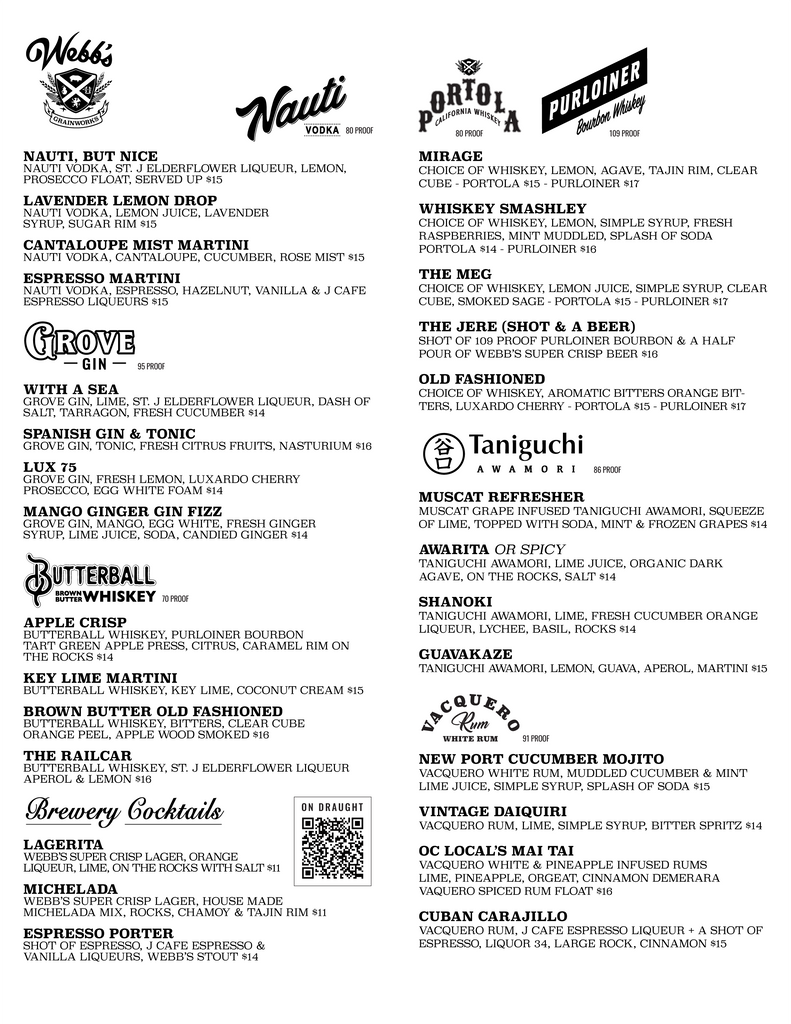 Here is a list of traditional and unique cocktails crafted at our bar to highlight our diverse spirit selections.